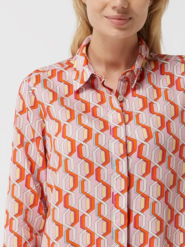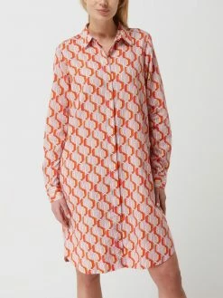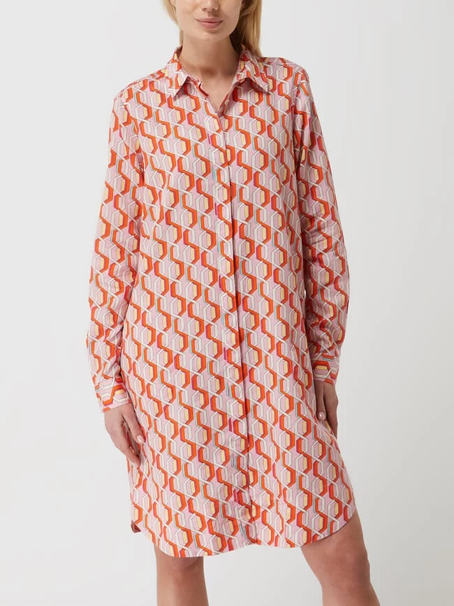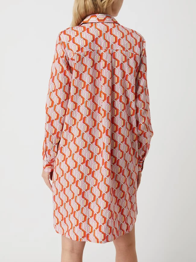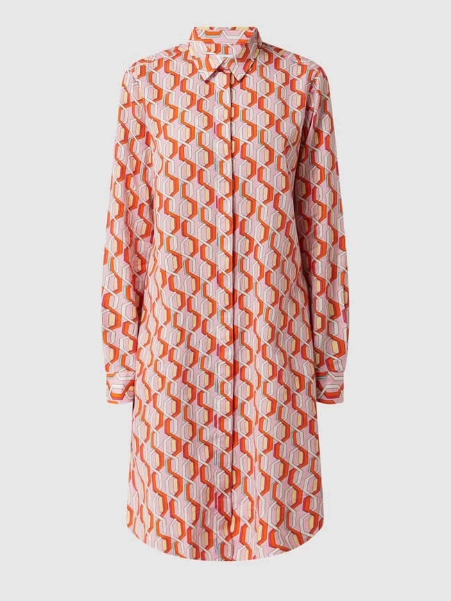 Das Blusenkleid von 0039 Italy ist aus reiner Baumwolle gefertigt und leicht ausgestellt geschnitten. Es zeigt sich mit Allover-Muster, Umlegekragen und verdeckter Knopfleiste.