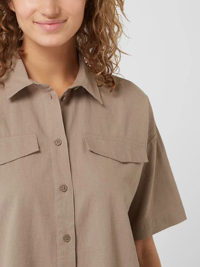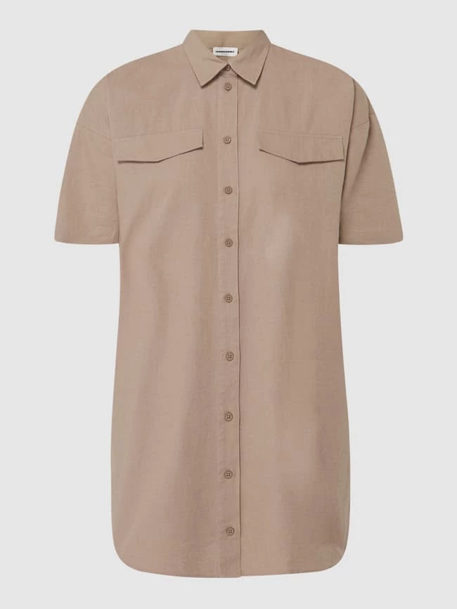 Das Hemdblusenkleid von ARMEDANGELS ist aus Bio-Baumwolle und Leinen gefertigt. Es zeigt sich in lockerer Passform mit überschnittenen Schultern und Zierpatten.