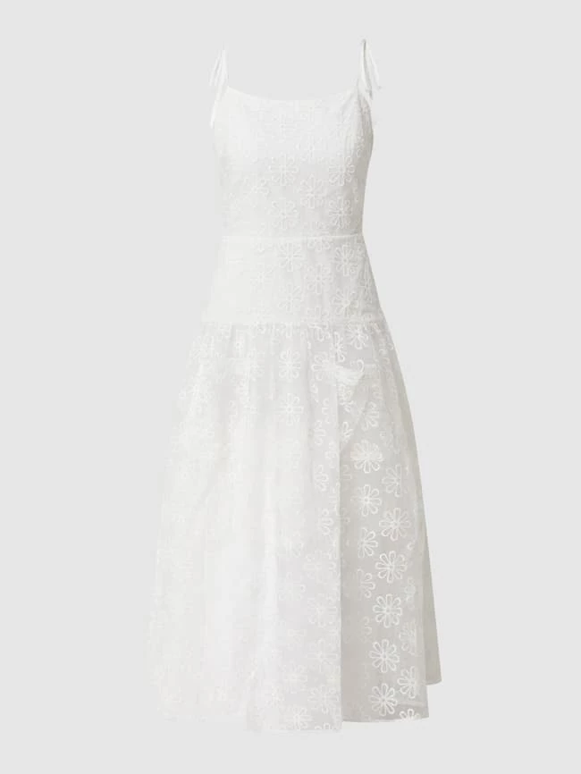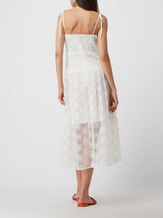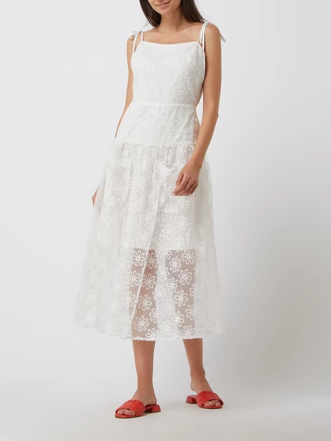 Das Midikleid von Bardot ist aus leichtem Material gefertigt und tailliert geschnitten. Es kommt mit floralen Stickereien, Karree-Ausschnitt und ausgestelltem Rockteil in transparenter Optik.