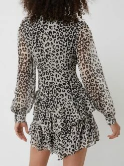 Das Minikleid von Bardot ist aus Chiffon gefertigt und tailliert geschnitten. Es kommt mit Allover-Muster, Schluppe zum Binden und ausgestelltem Rockteil im Stufen-Look.