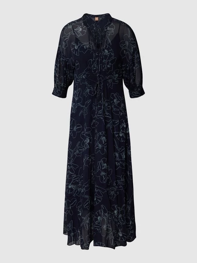 BOSS Midikleid Mit Floralem Muster Modell ‘Danoreta’ – Marineblau