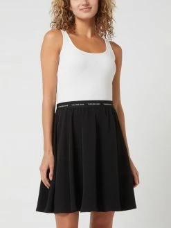 Das Kleid von Calvin Klein Jeans ist aus einem Modal-Elasthan-Mix gefertigt und tailliert geschnitten. Es zeigt sich im Rock-Top-Look mit schmalen Trägern und elastischem Logo-Bund am Rockteil.