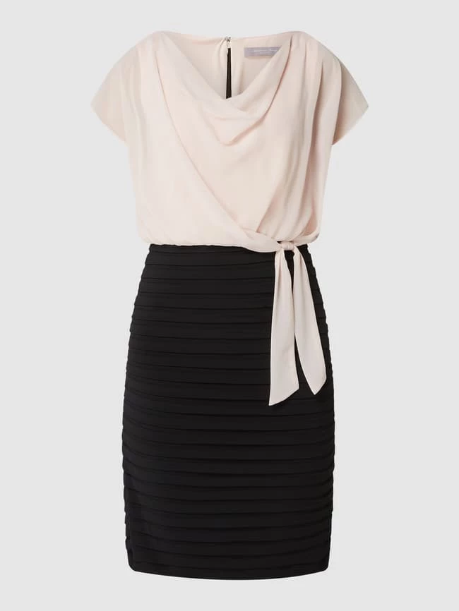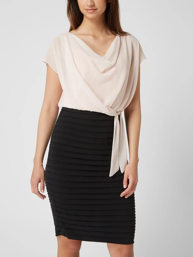 Das Cocktailkleid von Christian Berg Cocktail ist aus Chiffon gefertigt. Es zeigt sich in eng anliegender Passform mit Wasserfall-Ausschnitt, kurzen Flügelärmeln und geripptem Rockteil.