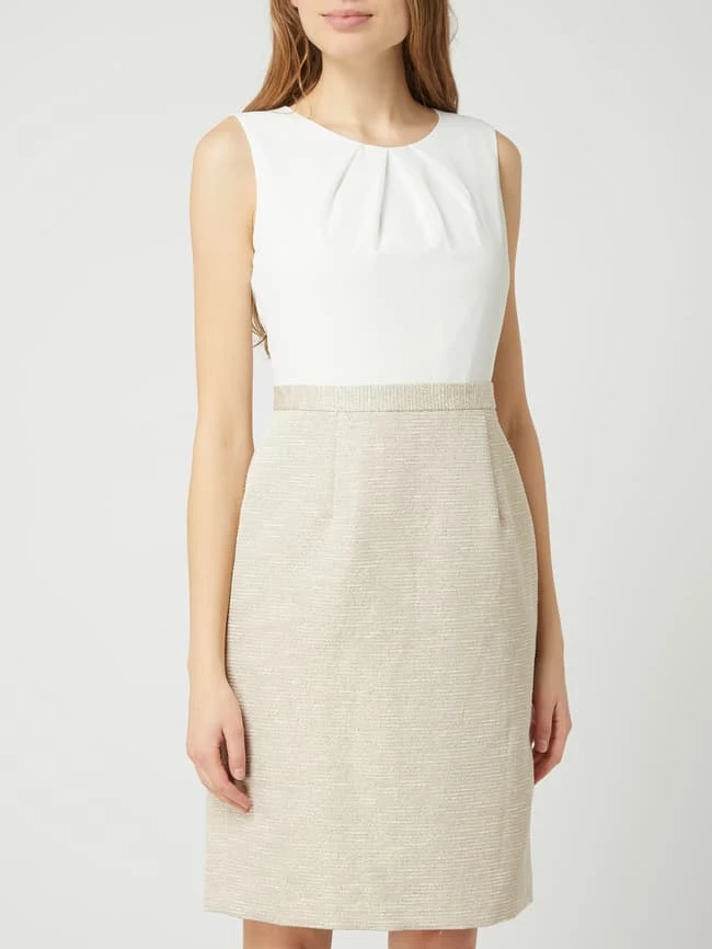 Das Cocktailkleid von Christian Berg Women kommt mit leichtem Oberteil aus Chiffon. Es ist eng anliegend geschnitten und zeigt sich mit Kellerfalte, gelegten Falten und Jacquardmuster am Rockteil.