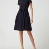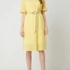 Das knielange Kleid von Christian Berg Woman ist aus reiner Baumwolle gefertigt und locker geschnitten. Es zeigt sich mit Allover-Muster und kurzer Knopfleiste.