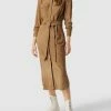 Das Kleid von CINQUE ist aus reiner Viskose gefertigt und tailliert geschnitten. Es zeigt sich mit floralem Muster, Umlegekragen und verkürzter Knopfleiste.