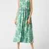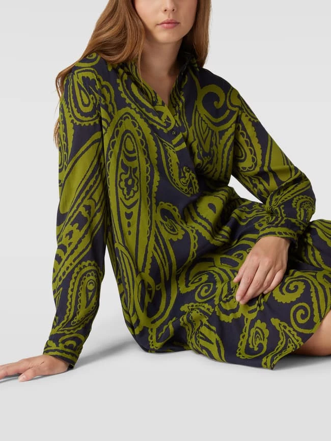Das Blusenkleid von Emily Van den Bergh ist aus reiner Viskose gefertigt und locker geschnitten. Es zeigt sich mit Allover-Muster, kurzer Knopfleiste und Unterkleid.