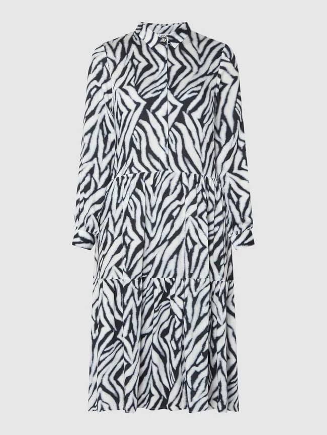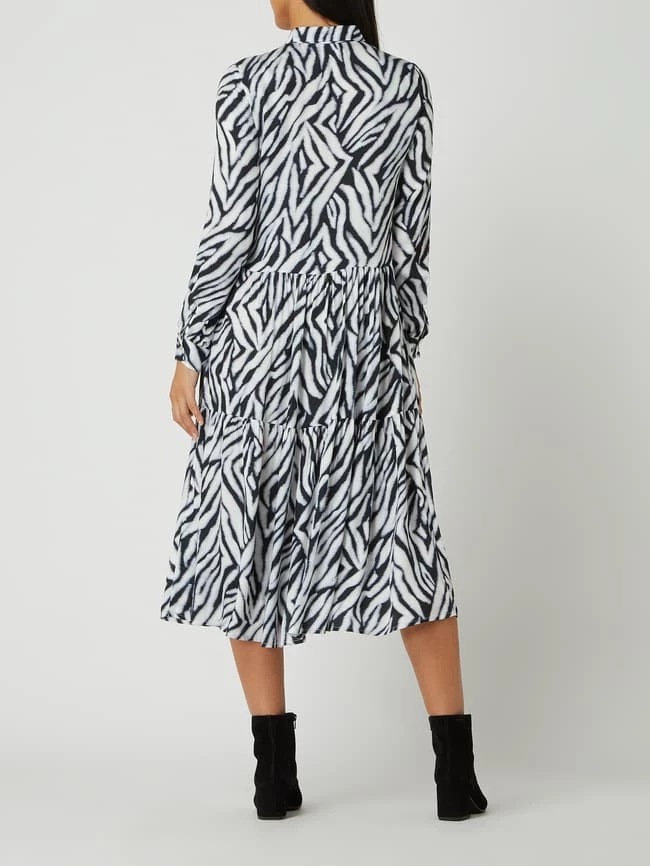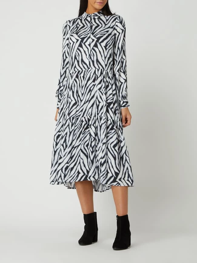 Das Blusenkleid von Emily Van den Bergh ist aus reiner Baumwolle gefertigt und ausgestellt geschnitten. Es zeigt sich mit Zebramuster, verdeckter Knopfleiste und Rockteil im Stufen-Look.