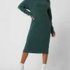 Das Jerseykleid von Fransa ist aus einem Viskose-Elasthan-Mix gefertigt. Es zeigt sich in eng anliegender Passform mit Rollkragen und gebundenem Gürtel.