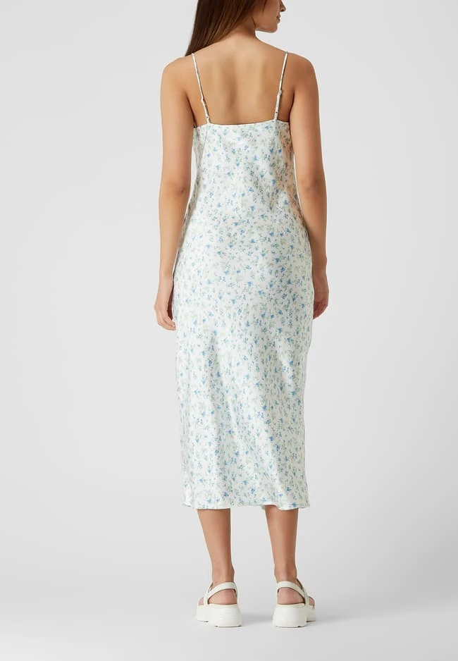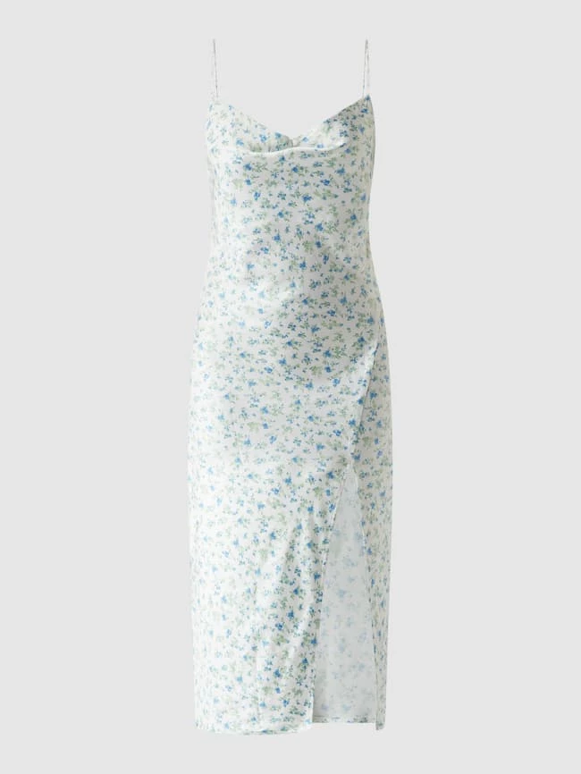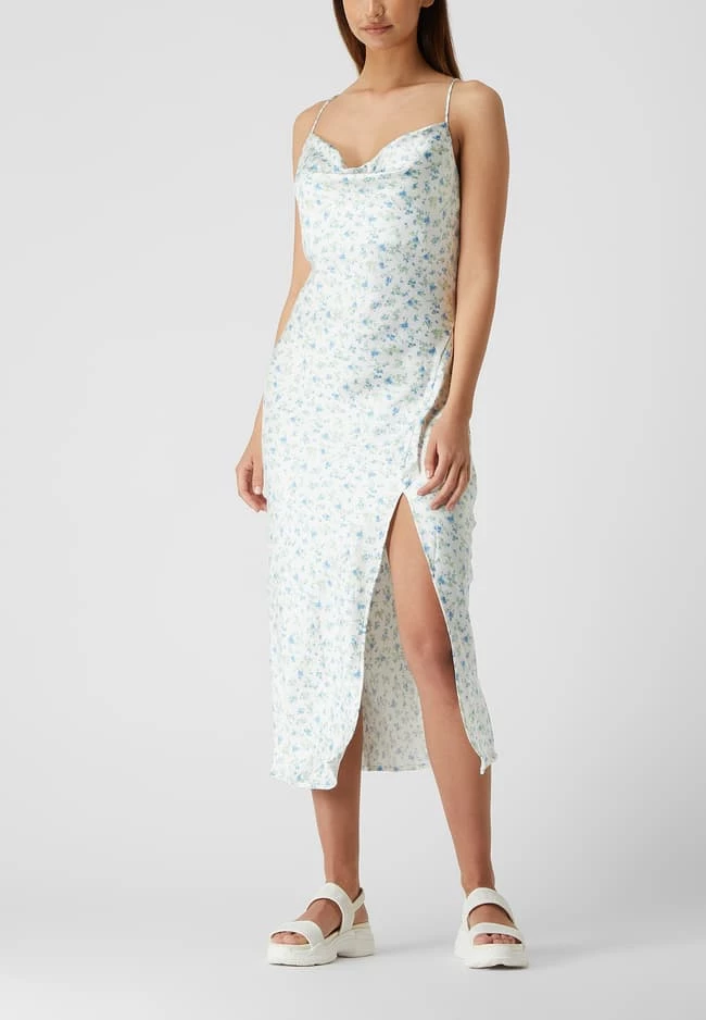 Das Maxikleid von Gina Tricot ist aus Satin gefertigt und eng anliegend geschnitten. Es kommt mit floralem Muster, Wasserfall-Ausschnitt und langem Gehschlitz.