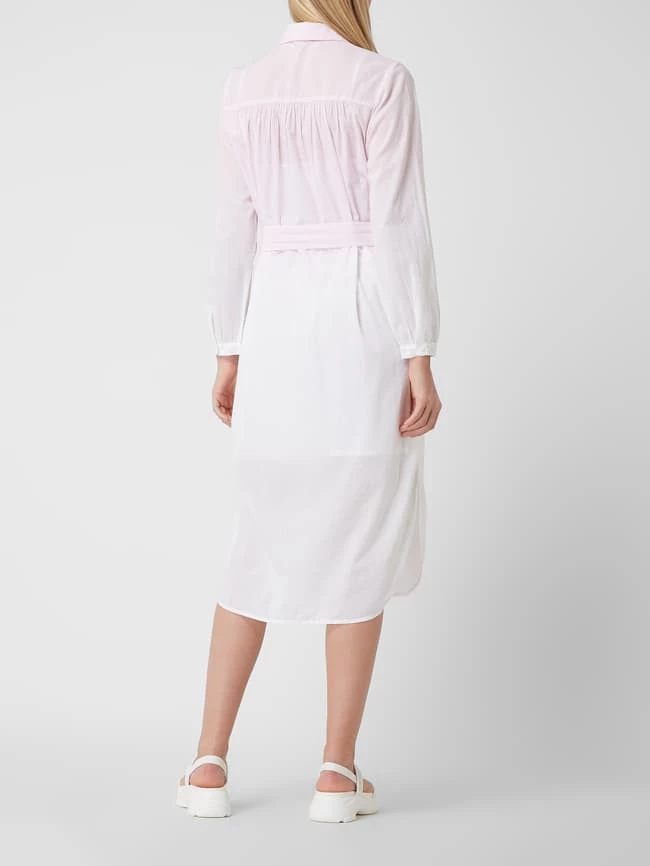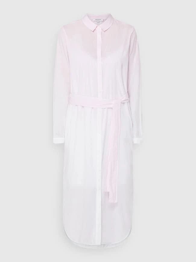 Das Blusenkleid von Great Plains ist aus reiner Baumwolle gefertigt. Es zeigt sich in taillierter Passform mit Umlegekragen, Taillengürtel und leichtem Unterkleid.