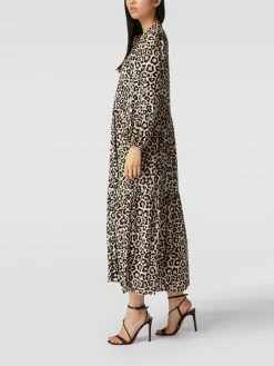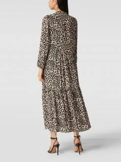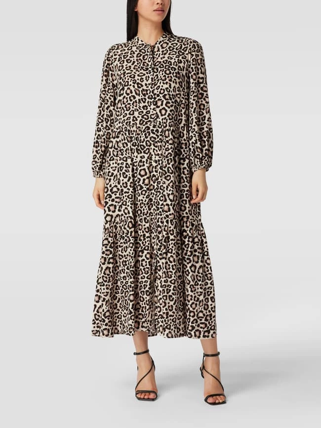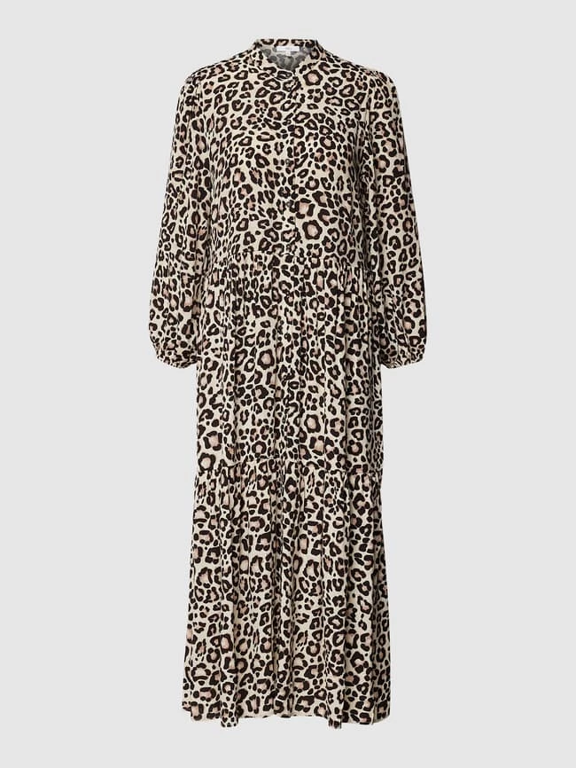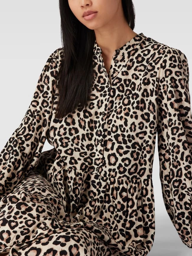Das Blusenkleid von Jake*s Casual ist aus reiner Viskose gefertigt und tailliert geschnitten. Es kommt im Stufen-Look mit Animal-Print, Stehkragen und durchgehender Knopfleiste.