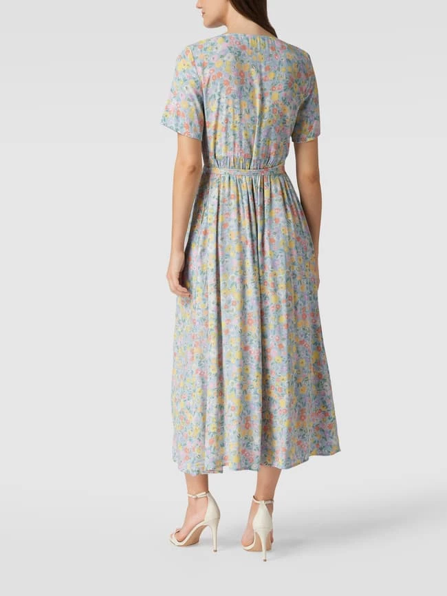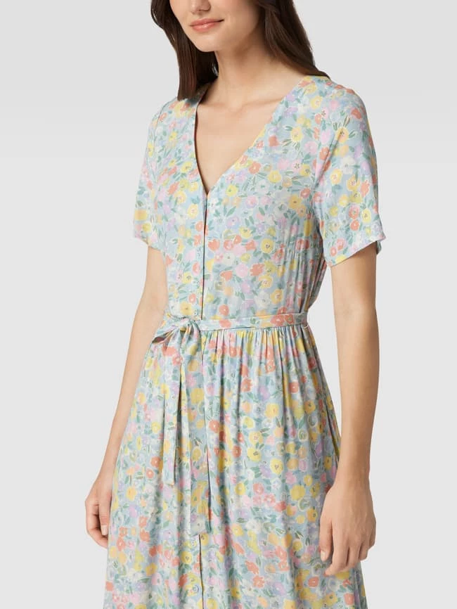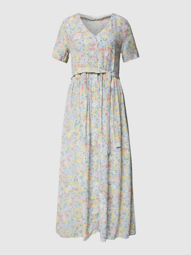 Das Hemdblusenkleid von Jake*s Casual ist aus reiner Viskose gefertigt und leicht tailliert geschnitten. Es zeigt sich mit floralem Allover-Muster und V-Ausschnitt.