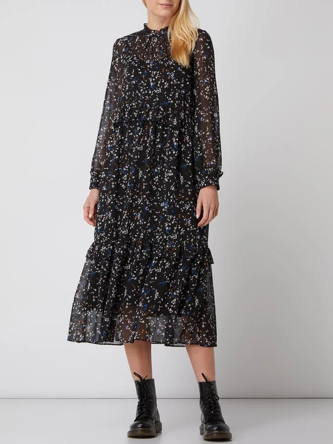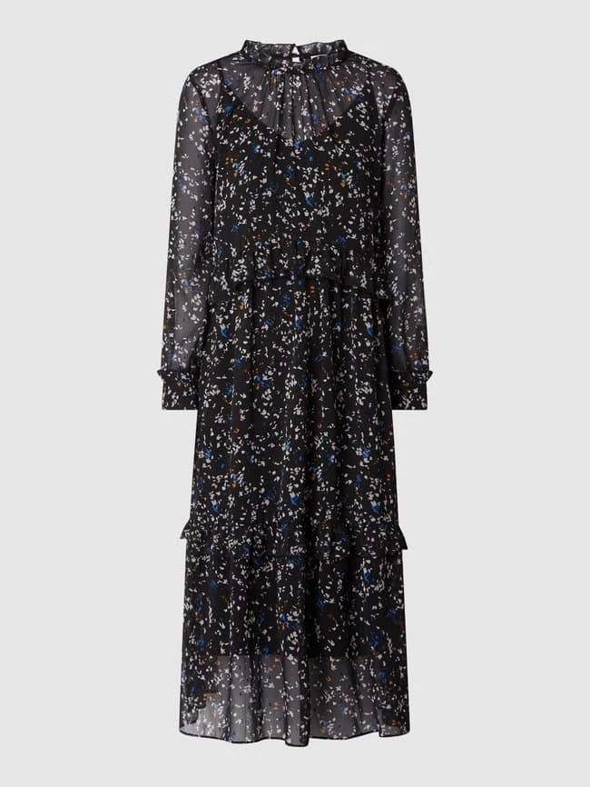 Das Kleid von Jake*s Casual ist aus leichtem Material mit Effektgarn gefertigt. Es kommt in ausgestellter Passform mit Allover-Muster, Volants und blickdichtem Unterkleid aus Viskose.