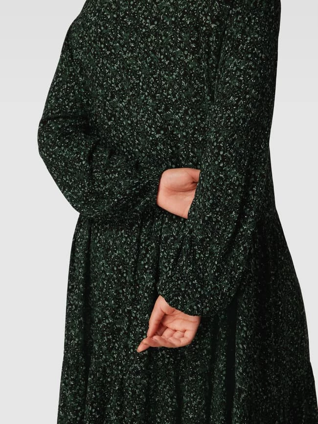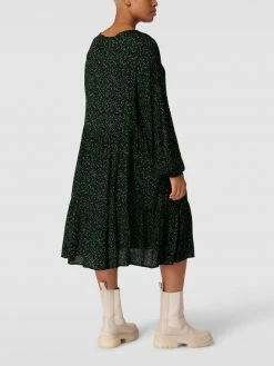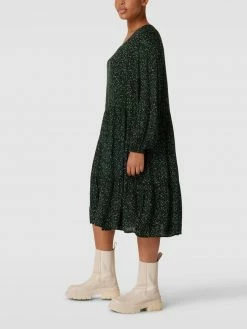 Das Midikleid von Kaffee Curve ist aus reiner Viskose gefertigt und gerade geschnitten. Es zeigt sich mit Allover-Muster sowie V-Ausschnitt und elastischen Ärmelabschlüssen.