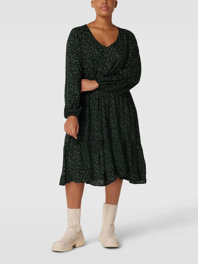 KAFFE Curve PLUS SIZE Midikleid Mit Allover-Muster Modell ‘Sama’ – Schwarz