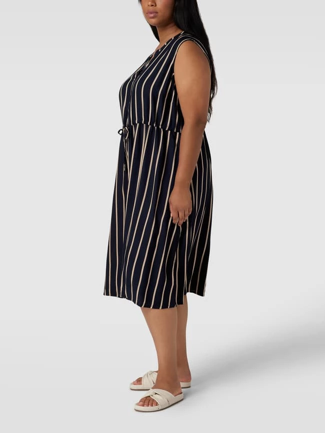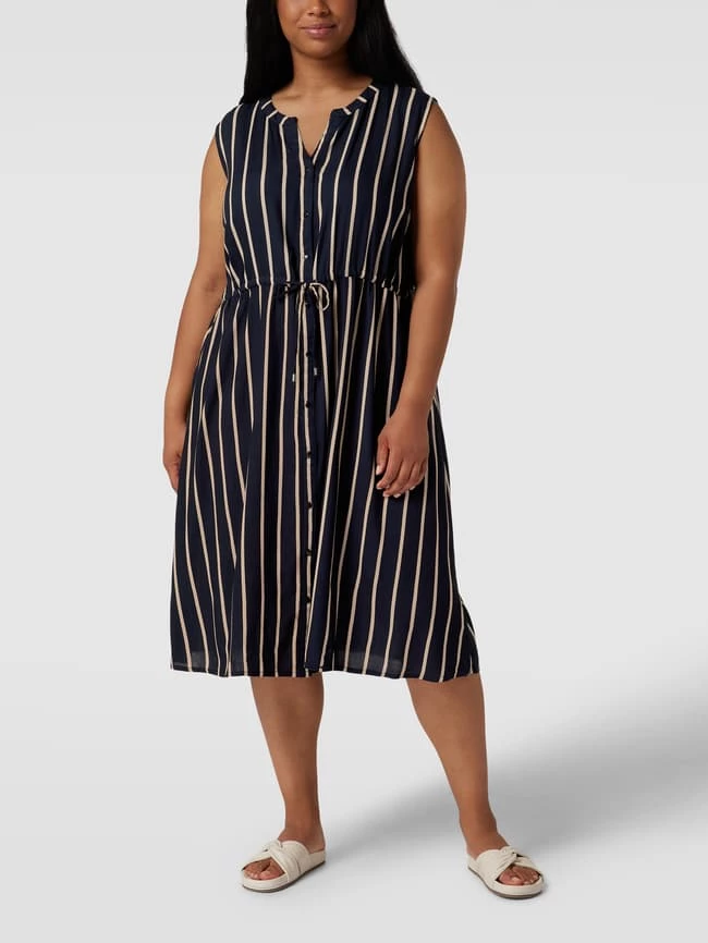 KAFFE Curve PLUS SIZE Midikleid Mit Streifenmuster – Marineblau