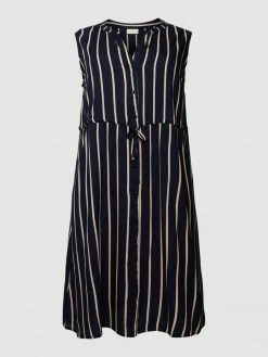 Das Midikleid von Kaffe Curve ist aus reiner Viskose gefertigt und in lockerer Passform gehalten. Es zeigt sich im ärmellosen Design mit Streifenmuster, Taillengurt sowie durchgehender Druckknopfleiste.