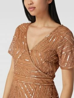 Das Cocktailkleid von Lace & Beads ist aus strapazierfähigem Material gefertigt und tailliert geschnitten. Es kommt mit kurzen Ärmeln, V-Ausschnitt in Wickel-Optik sowie Besatz aus Pailletten und Ziersteinen.