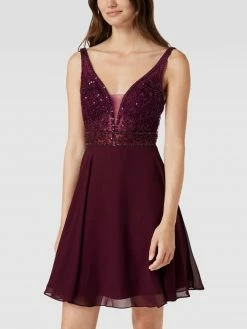 Laona Cocktailkleid Mit Floraler Stickerei Und Zierbesatz – Bordeaux Rot