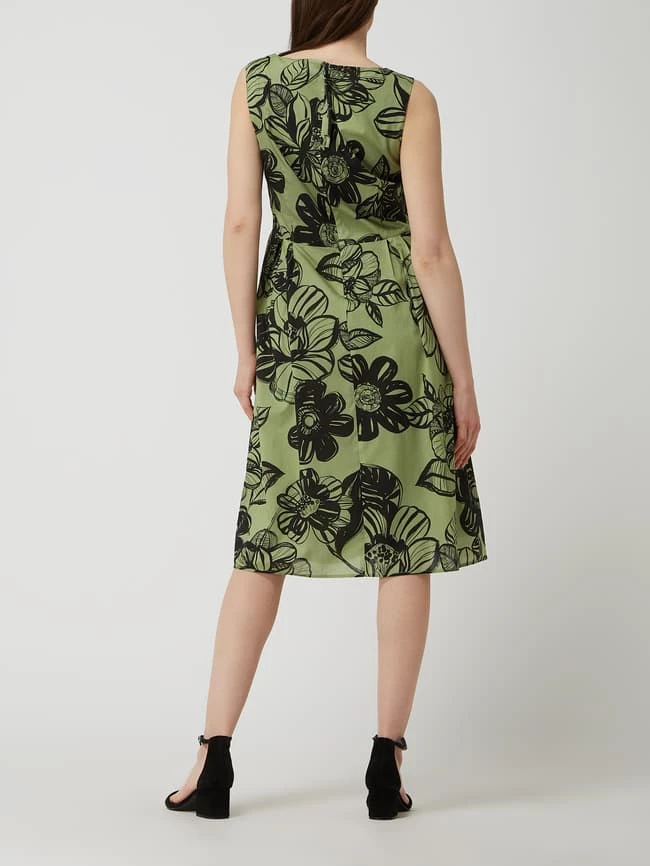 Das Kleid von Luisa Cerano ist aus reiner Baumwolle gefertigt und kommt in taillierter Passform. Es zeigt sich mit floralem Muster, Rundhalsausschnitt und Kellerfalten.
