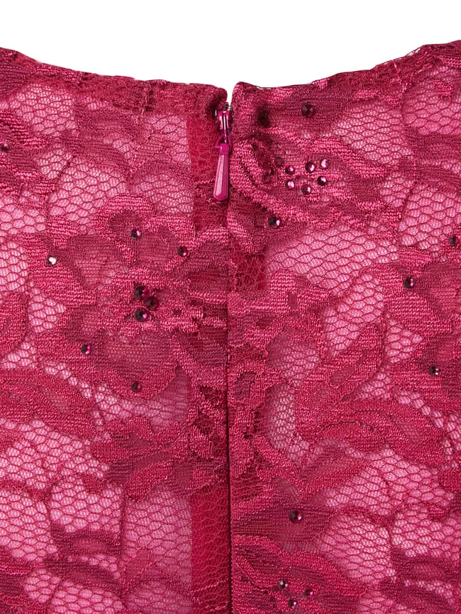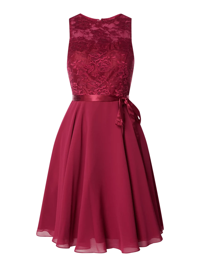 Luxuar Cocktailkleid Aus Chiffon Und Spitze – Kirschrot