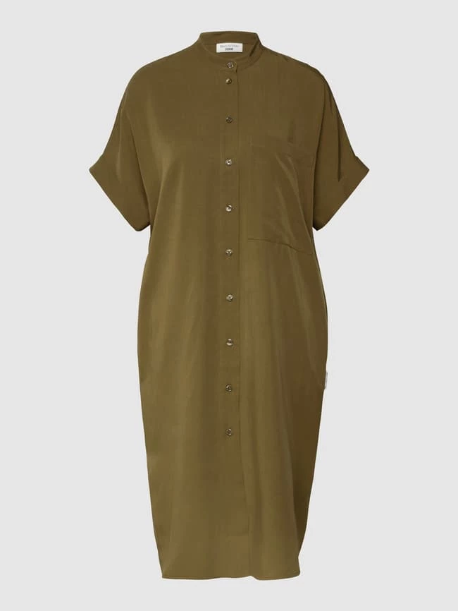 Das Midikleid von MARC O’POLO DENIM ist aus reinem Lyocell gefertigt und locker geschnitten. Es zeigt sich im unifarbenen Design mit Brusttasche und Maokragen.