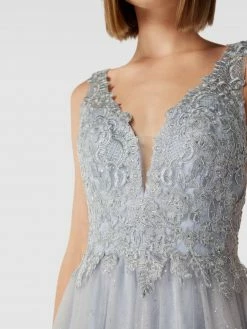 Das Abendkleid von Mascara ist aus einem strapazierfähigen Material gefertigt und im taillierten Schnitt gehalten. Es zeigt sich in unifarbenem Design mit floralem Muster und Herz-Ausschnitt.