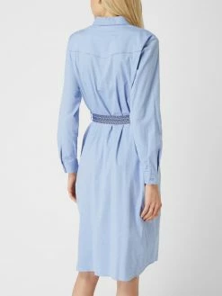 Das Blusenkleid von MILANO ITALY ist aus einem Baumwoll-Elasthan-Mix gefertigt und tailliert geschnitten. Es kommt mit Umlegekragen, fixiertem Taillengürtel zum Binden und Eingrifftaschen.