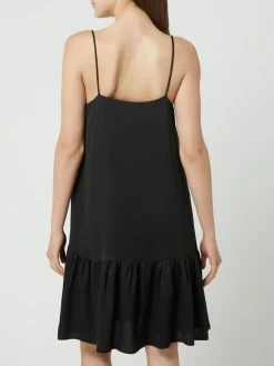 Das Kleid von Modström ist aus einer Materialmischung mit recyceltem Polyester gefertigt. Es kommt in ausgestellter Passform mit Spaghettiträgern und Volantsaum.