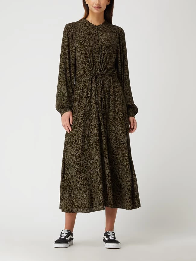 Das Maxikleid von Moss Copenhagen ist aus reiner Viskose gefertigt und tailliert geschnitten. Es kommt mit Allover-Muster, verdeckter Knopfleiste und Tunnelzug im Taillenbereich.