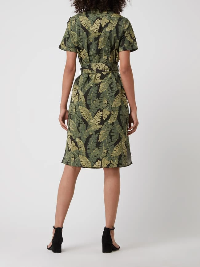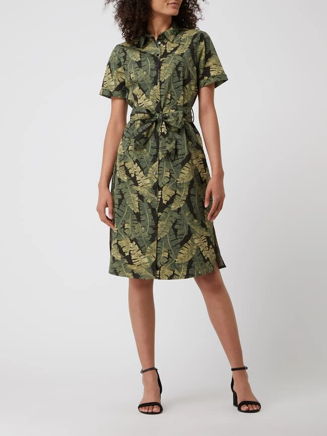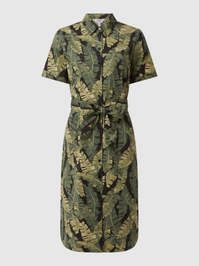 Das Blusenkleid von OBJECT ist aus einer Baumwollmischung mit Stretch-Anteil gefertigt und tailliert geschnitten. Es kommt mit Allover-Muster, fixiertem Taillengürtel zum Binden und ausgestelltem Rockteil.