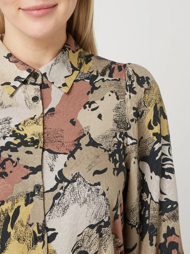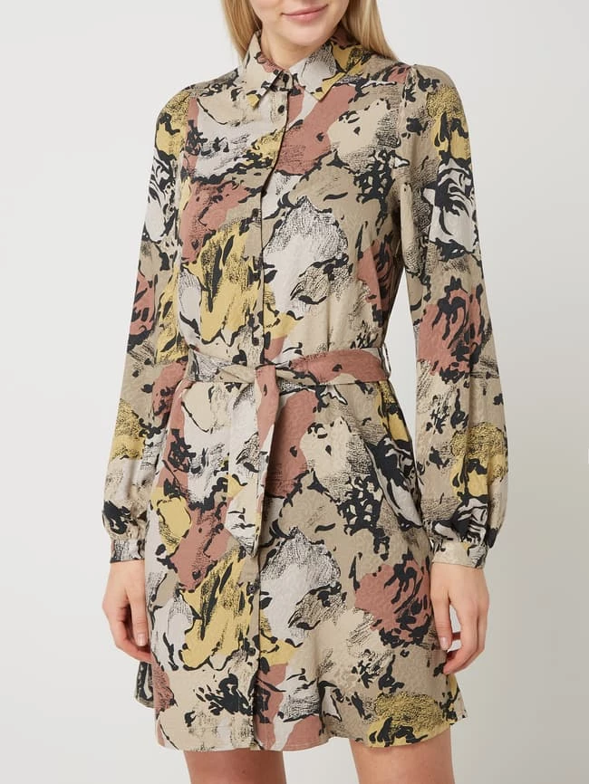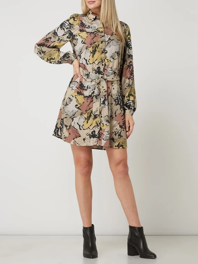 Das Blusenkleid von OBJECT ist aus reiner Viskose gefertigt und ausgestellt geschnitten. Es zeigt sich mit abstraktem Muster, Knopfleiste und Taillenband. Gut zu wissen: LENZING™ ECOVERO™ ist die ökologischste und sauberste Viskose, die aktuell hergestellt werden kann. Die Gründe hierfür? Holz aus nachhaltiger Forstwirtschaft, kurze Transportwege, ein geschlossener Kreislauf und 50% weniger Energie- und Wasserverbrauch.