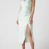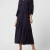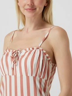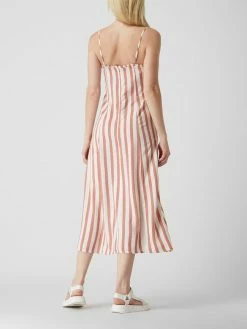 Das Midikleid von ONLY ist aus reiner Viskose gefertigt und tailliert geschnitten. Es zeigt sich mit Streifenmuster, Spaghettiträgern und ausgestelltem Rockteil.