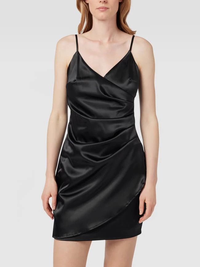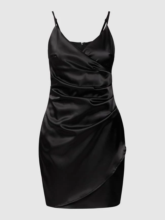 Das Cocktailkleid von Paradi ist aus einem Material-Mix mit Stretch-Anteil gefertigt und kommt in körpernaher Passform. Es zeigt sich in Wickel-Optik mit gelegten Falten und verstellbaren Spaghettiträgern.