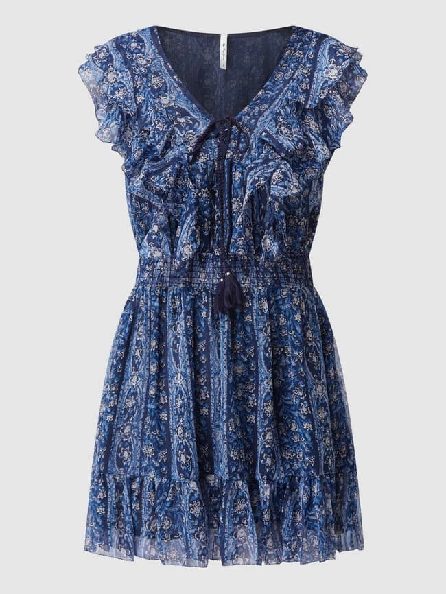 Das Minikleid von Pepe Jeans ist aus Chiffon gefertigt und tailliert geschnitten. Es kommt mit Allover-Muster, Schnürung und Volants.
