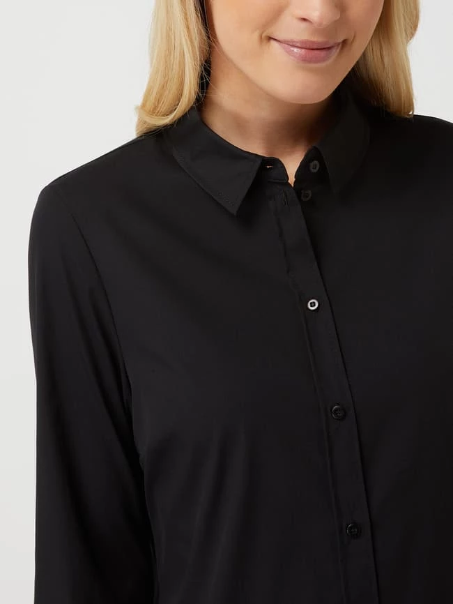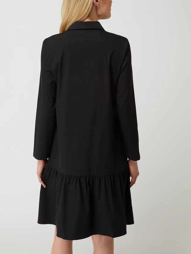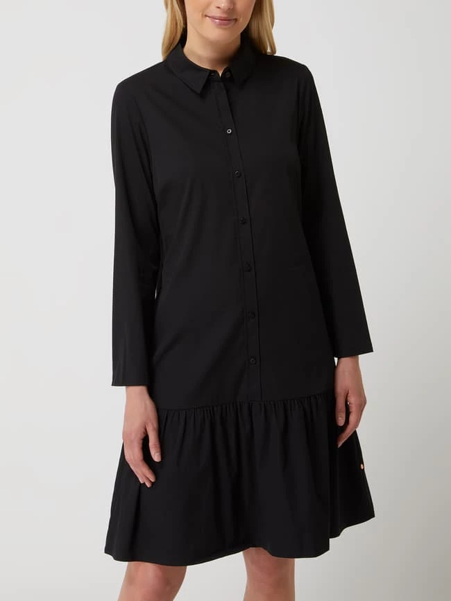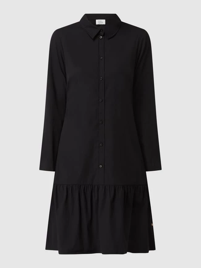 Das Blusenkleid von ROBE LÉGÈRE ist aus einer Baumwollmischung mit Stretch-Anteil gefertigt. Es kommt in ausgestellter Passform mit Umlegekragen, Knopfleiste und Volantsaum.