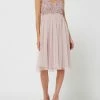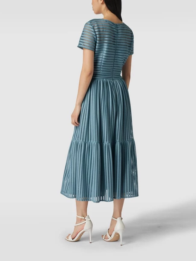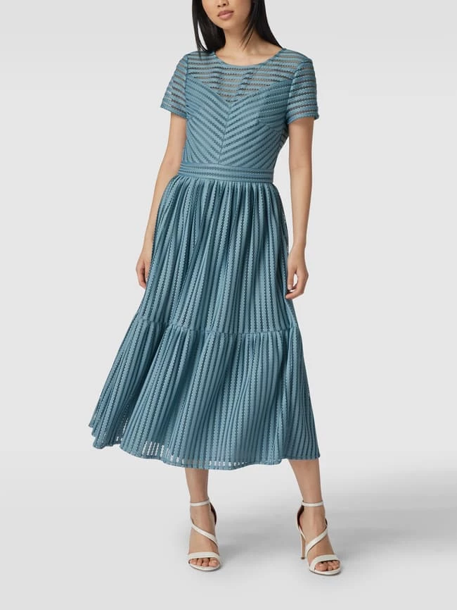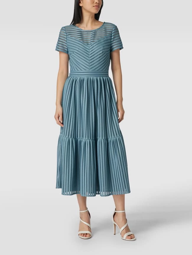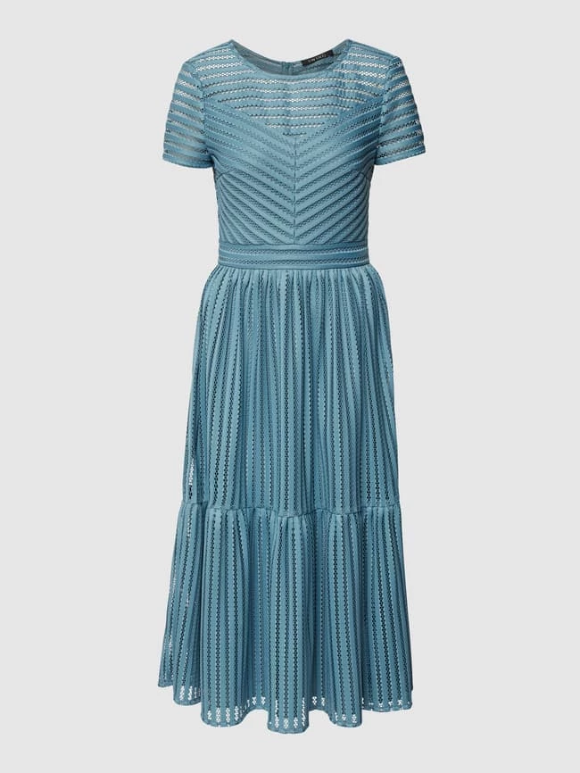 Das Cocktailkleid von SWING ist aus strapazierfähigem Material gefertigt und tailliert geschnitten. Es kommt mit Allover-Lochstickereien, Taillenpasse und Volants sowie Rundhalsausschnitt.