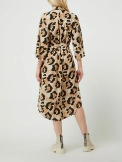 Das Kleid von VILA ist aus reiner Viskose gefertigt und tailliert geschnitten. Es zeigt sich mit Animal-Print, Umlegekragen und verdeckter Knopfleiste.